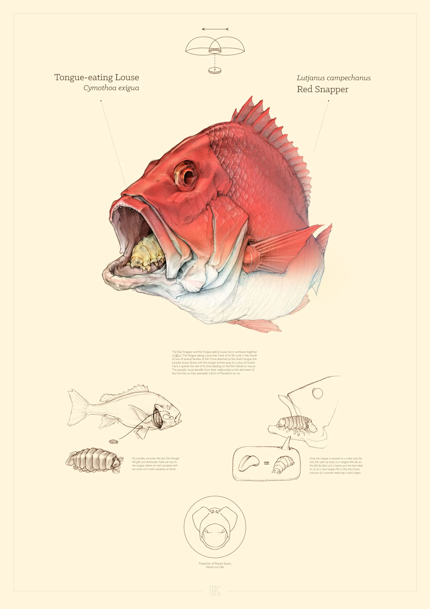 "Once the tongue is reduced to a mere stub, the host fish uses my body as a tongue. We rely on the fish for food and a home, and the host relies on us as a new tongue. This is the only known instance of a parasite replacing a host’s organ."